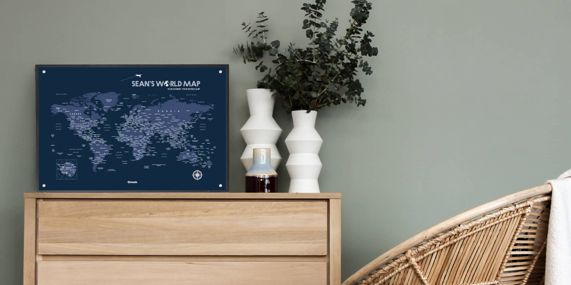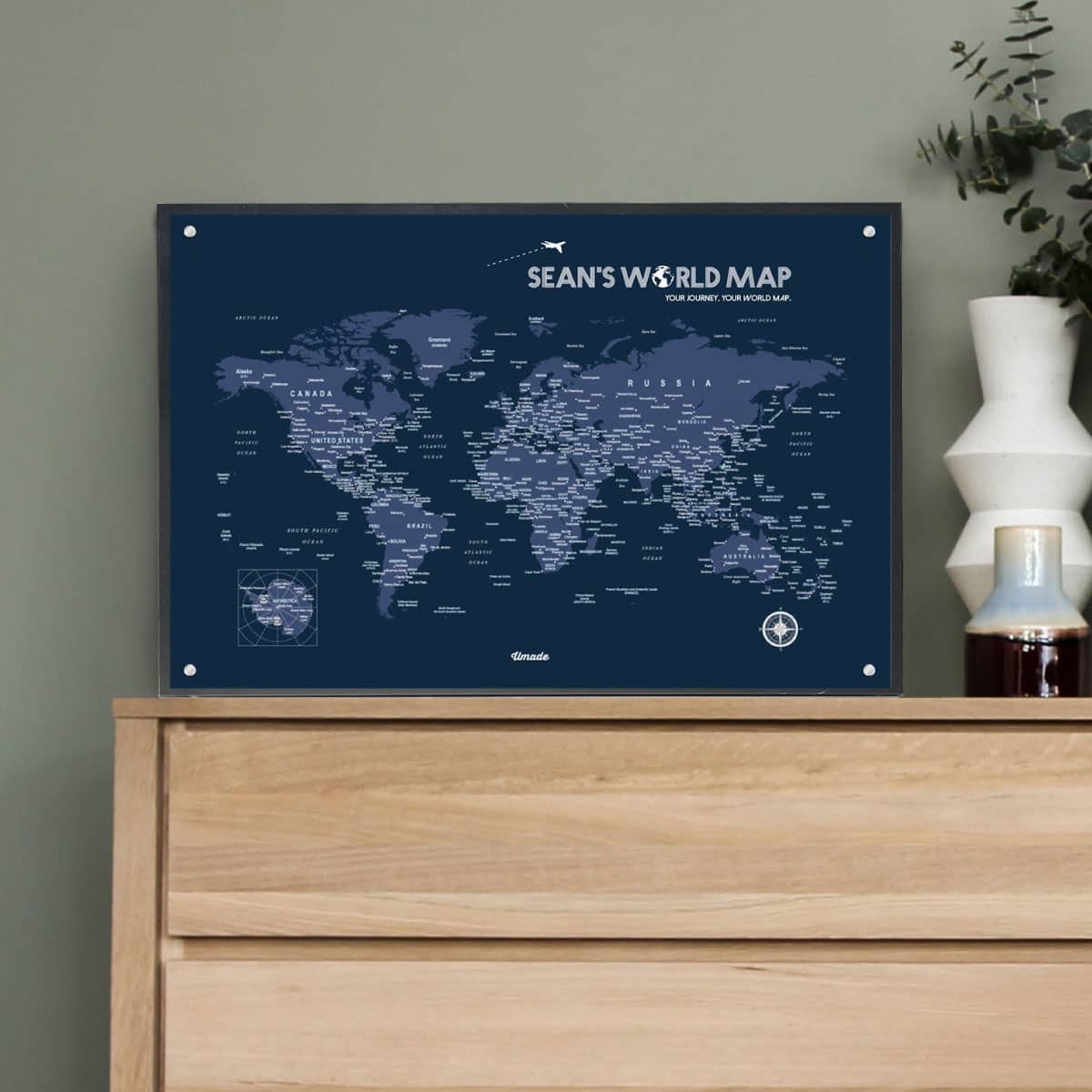 UMap。世界地圖World Map-海軍藍 Navy Blue (實木框海報系列)