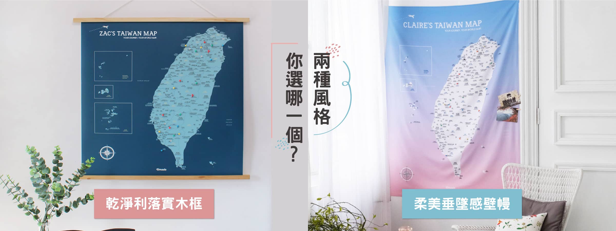 UMap。台灣地圖(縣市/熱門景點)Taiwan Map - 石英粉 Rose Quartz & Serenity (實木框海報系列)