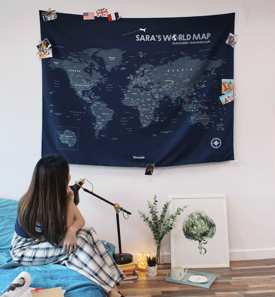 UMap。世界地圖World Map- 星空黑 Starry Black (壁幔/布系列)