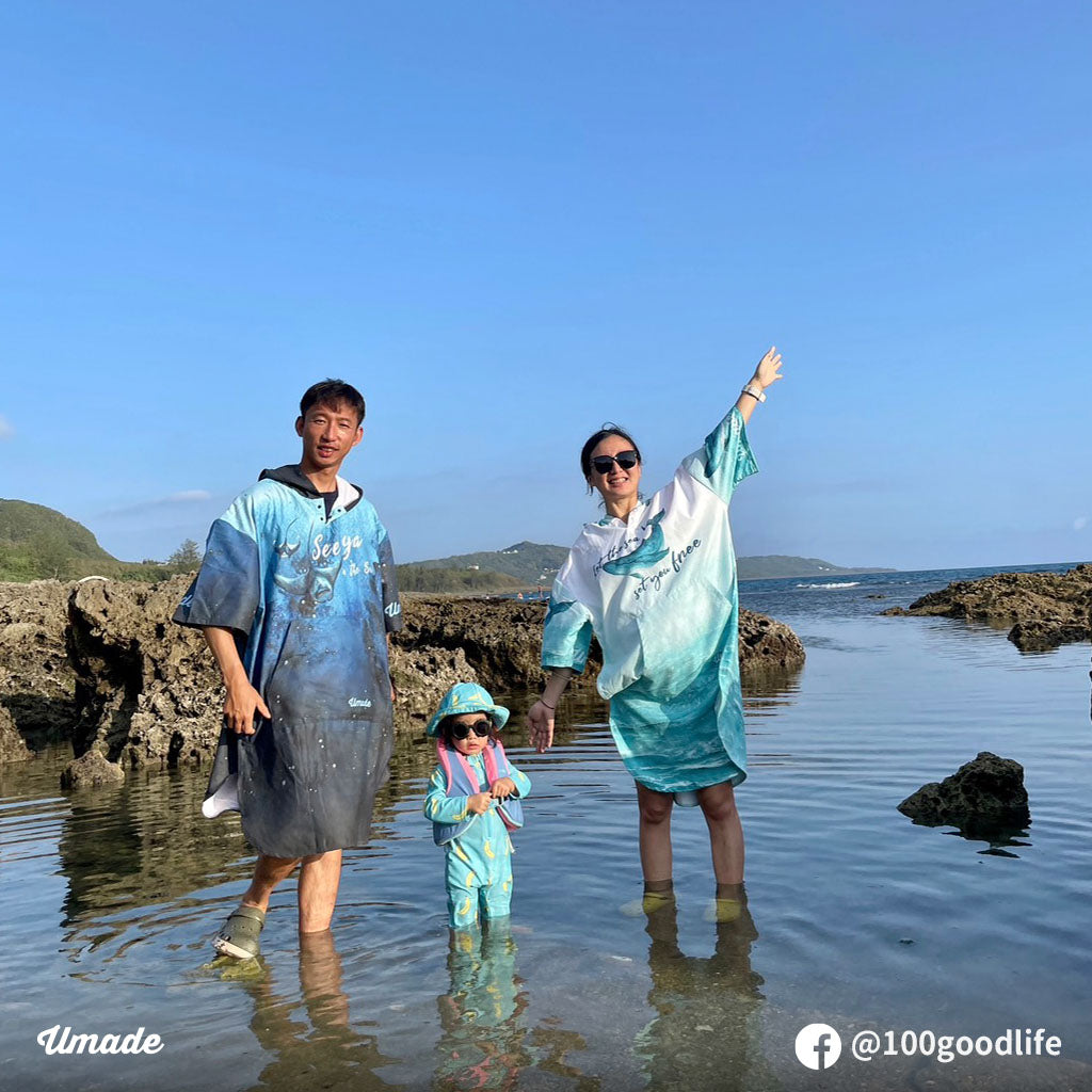 此為幽藍鬼蝠魟毛巾衣商品頁,另有快乾巾同款設計和幸運鯨魚尾毛巾衣可選擇 完美遮陽、防風、防沙 手機、零錢、鑰匙、悠遊卡 迅速換衣不怕走光!露多露少自己決定 上岸/浴後立馬穿,身體頭髮都瞬乾,不怕著涼/走光 Umade設計師漚心瀝血之作,打樣超過50次,只為呈現最美的深海蔚藍給你! 不論是水上活動(海邊 / 衝浪 / 游泳 / 潛水 / 溯溪 / 泛舟 / SUP / 遊艇)、擁有優雅又高冷姿態的鬼蝠魟象徵著自由和勇敢