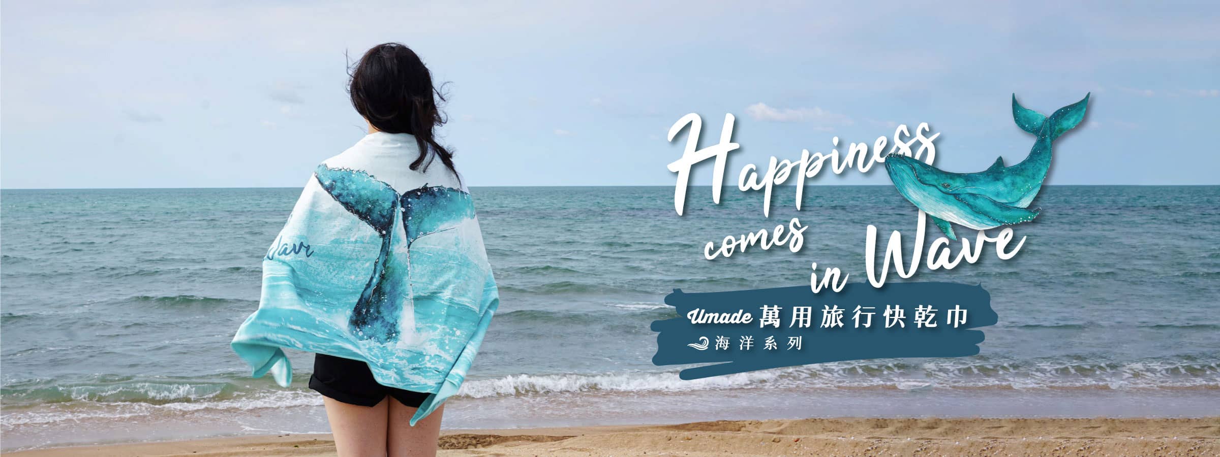 【萬用快乾巾/海灘巾/旅行浴巾/運動毛巾】海洋系列 - 幸運鯨魚尾
