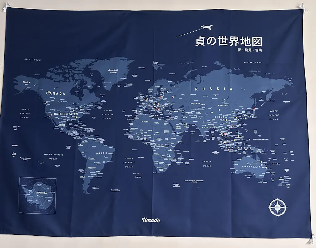 UMap。世界地圖World Map-海軍藍 Navy Blue (壁幔/布系列)