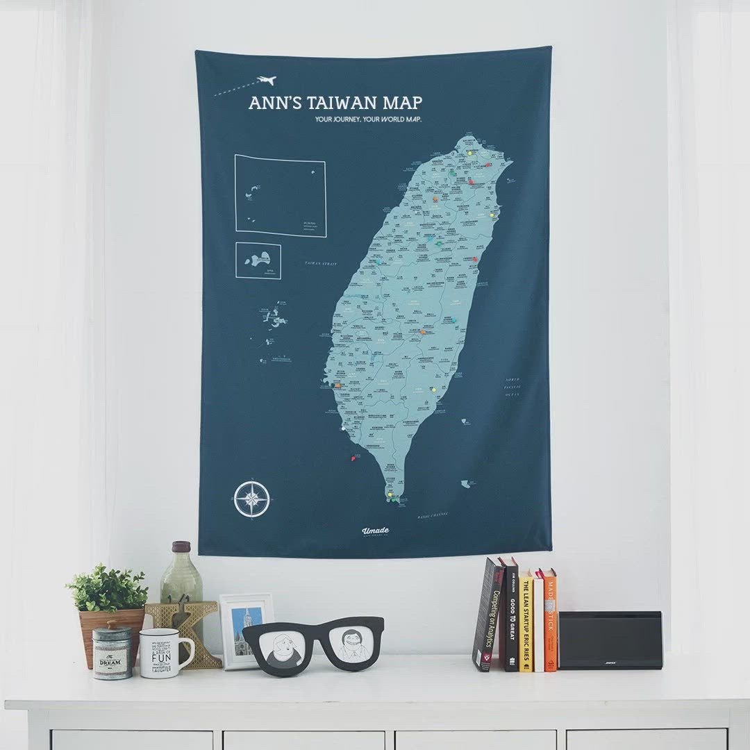 UMap。台灣地圖(縣市/熱門景點)Taiwan Map - 峰礦藍 Mineral Blue (壁幔/布系列)