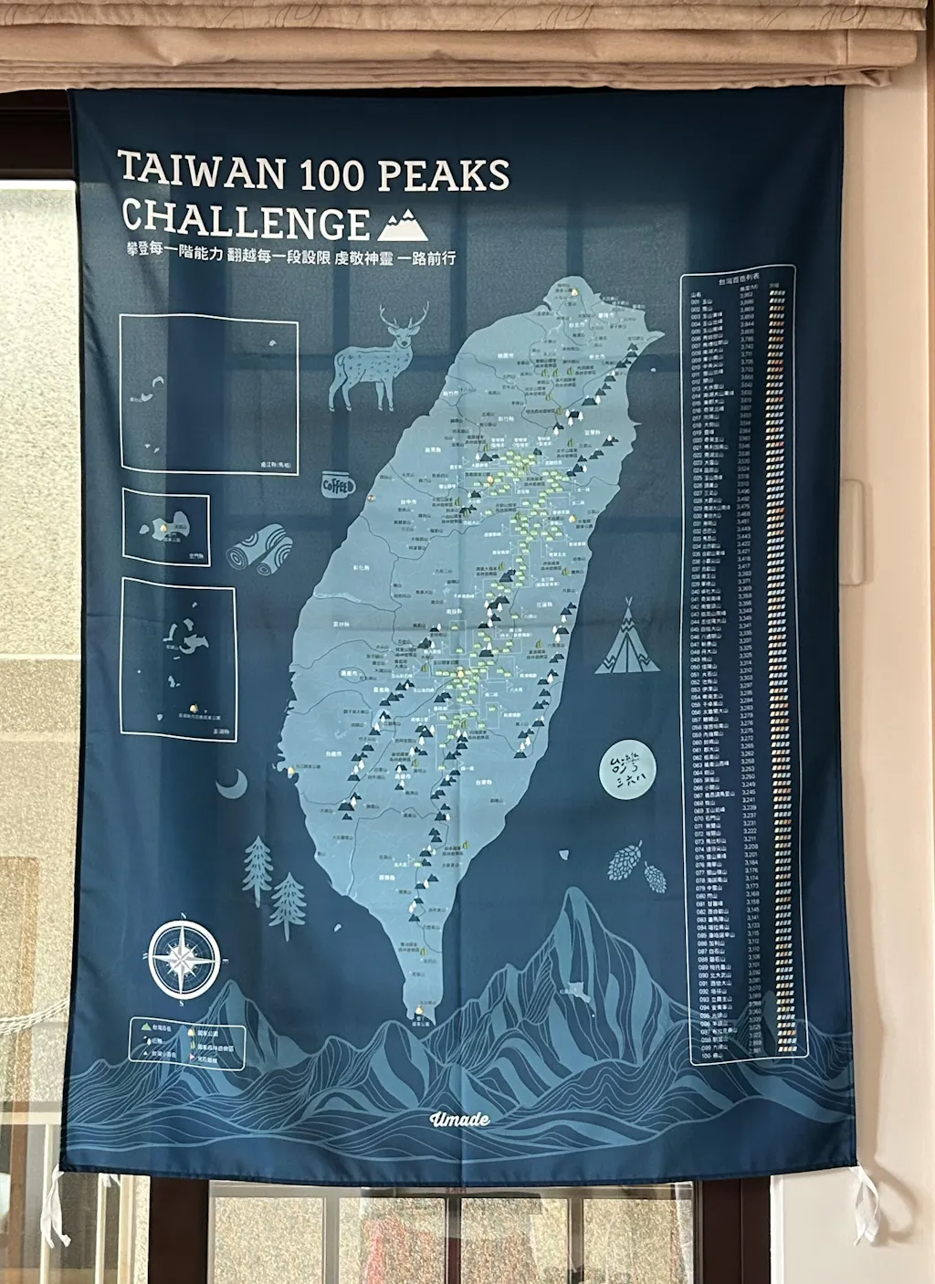 UMap。台灣百岳/小百岳地圖- 峰礦藍(壁幔/布系列) Map of Taiwan 100 Peaks - Mineral Blue